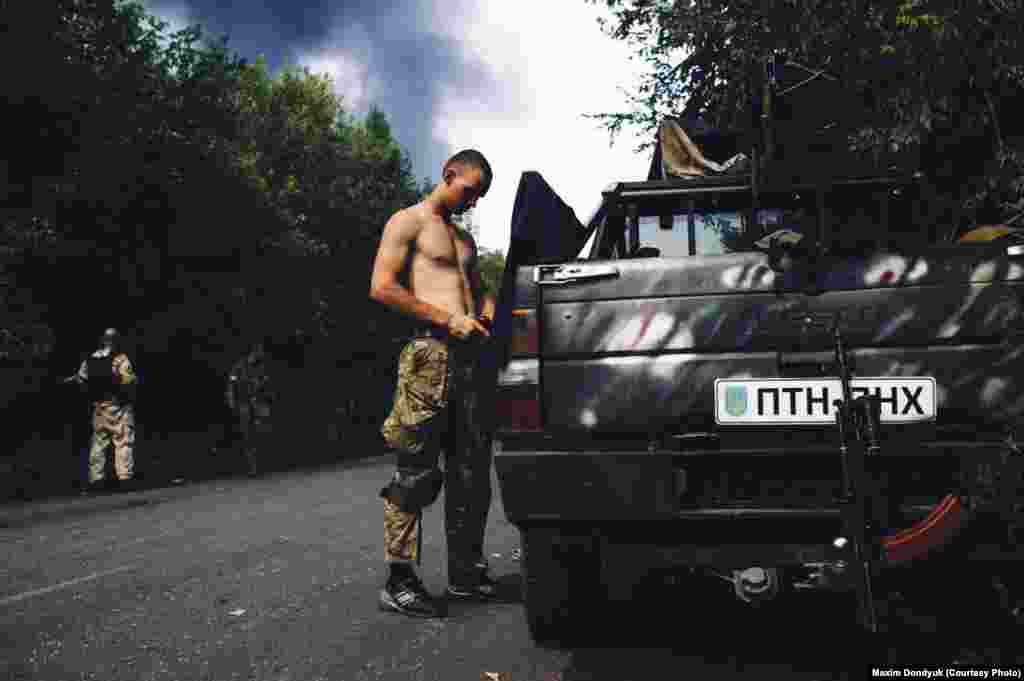 Водитель артиллерийской установки Руслан Клименко из Бердичева, мобилизован в марте 2014 года. Иловайск, 14 августа.