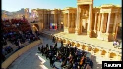 А в четверг любимец российских меломанов, виолончелист Сергей Ролдугин, вместе с дирижёром Валерием Гергиевым дал концерт в сирийской Пальмире, освобождённой войсками Башара Асада при поддержке российской армии.