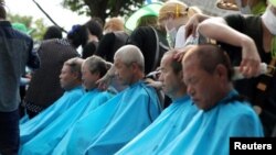 Около 900 жителей Южной Кореи обрили головы в понедельник в знак протеста против решения правительства разместить систему ПРО, предназначенную для борьбы с северокорейскими ракетами.