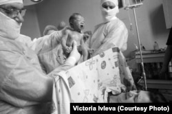 В Киеве проходит выставка московского фотографа и журналиста Виктории Ивлевой "Рождение Украины". Весной Виктория снимала роды в областных центрах Украины как символ появления новой национальной идентичности, которое, как и рождение ребенка, проходит с мучениями и кровью. Майдан, война на востоке страны, аннексия Крыма и одновременно редкий подъем и воодушевление украинцев символически отражены в фотографиях рожениц и младенцев. 75 полутораметровых фотографий на ткани представлены в киевском центре "Изоляция".
