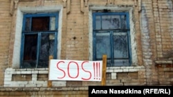 На фасаде дома приколочен плакат, большие красные буквы: "SOS!" С другой стороны здания мотаются на ветру обрывки еще двух плакатов, их повесили тут летом, на День города. На одном было написано: "Помогите! Мы заложники этого памятника", на другом: "Позор администрации!"