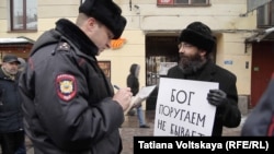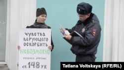 В Санкт-Петербурге трое священнослужителей неканонической Апостольской православной церкви провели серию одиночных пикетов на набережной канала Грибоедова недалеко от Невского проспекта. Они выступили против 148-й статьи Уголовного кодекса, которая предусматривает уголовную ответственность за оскорбление религиозных чувств верующих.