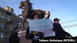 В Санкт-Петербурге десять активистов движения "Солидарность" вышли на Невский проспект с одиночными пикетами в поддержку оппозиционного активиста Ильдара Дадина, осужденного за неоднократное нарушение порядка проведения уличных акций. Об этом сообщает корреспондент Радио Свобода Татьяна Вольтская.