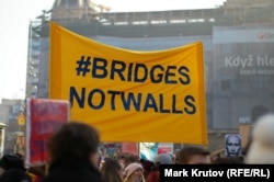 Такой же баннер на акции в Праге:
