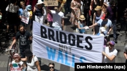 "Мосты, а не стены" – плакат на "марше сестер" в Сиднее, Австралия: