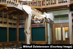 Специально к "Библионочи" была изготовлена и в зале Корфа подвешена на тросиках гигантская "скульптура" из картона – доисторический ящер тираннозавр, двуногий хищник с массивным черепом и длинным хвостом.