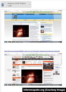 Одни из самых интересных писем в опубликованном массиве – от некоей "Луизы Мамедовой". Она присылает Иналу Ардзинбе ссылки на заказные статьи в СМИ, предлагает кандидатов для сотрудничества, а в январе снабжает его файлом "Одесса Наши.docx", в котором перечисляются личные данные бывших и действующих сотрудников правоохранительных органов Одессы и Одесской области. Но самый интересный документ, присланный ей в администрацию президента, называется "Сводный отчет по акциям за февраль 2015 г.". В нем перечисляются "информационные вбросы", рассказывается о спровоцированной драке между сторонниками "Автомайдана" и представителями азербайджанской диаспоры, о поджоге автобуса, выезжавшего из офиса "Правого сектора", – все это со ссылками, подтверждающими, что акция или вброс действительно состоялись: