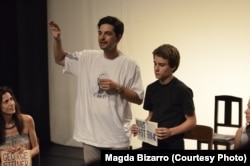 Впрочем, Тиаго Родригеш, худрук лиссабонского Национального театра королева Марии II, показавший на NET спектакль "Наизусть", легко обходится без музыки. И без декораций, без постановочного света, практически, без всего, что любят использовать в театре. Все, что нужно для его магического спектакля, – несколько книг, вязь подлинных историй и десять добровольцев из зала. "Наизусть" предполагает максимальный контакт автора и зрителя: десять человек на сцене вместе с Тиаго учат наизусть 30-й сонет Шекспира – в сопровождении режиссерских рассказов о жизни и литературе.