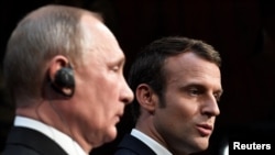 В сообщении пресс-службы Кремля говорится, что Путин проинформировал Макрона об итогах своих переговоров с лидерами Турции и Ирана о ситуации в Сирии, а также о ходе операции в Восточной Гуте, которую в Кремле назвали "беспрецедентной операцией по спасению мирных жителей".