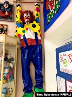 Там, помимо скульптурных композиций типа "ученого кота" и компании, выстроены избушки-павильоны, где гигантские куклы в декорациях пушкинских сказок разыгрывают сценки из них. Ну вот вы подходите к очередному павильончику, нажимаете большую желтую кнопку, и куклы за стеклом оживают: поют, танцуют и декламируют. Потом мы сунули нос во Дворец культуры и вдруг обнаружили там табличку с надписью "Музей клоунов". Мы зашли и увидели настоящее богатство.