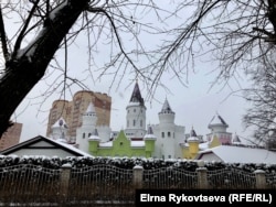 И это действительно оказалось очень близко, сразу за МКАД. Там забавное соседство торгового центра под названием Vegas с совхозом имени вождя мирового пролетариата. Территория совхоза окружена оградой, но вход и въезд совершенно свободный. И вот мы вошли. И нам понравилось абсолютно все, что удалось увидеть тогда на очень поверхностный воскресный взгляд. Нас, во-первых, сразу впечатлило здание детского садика, потому что такие замки для детей обычно не строят, строят для "новых русских".