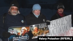 "Юрию Алексеевичу сегодня исполнилось 63 года, – рассказал Радио Свобода организатор пикета, гражданский активист Андрей Литвин. – Он не имеет возможности встречать этот день в кругу семьи, друзей. Третий год длится его преследование по совершенно надуманному, грязному обвинению, и все, кто знает Юрия Алексеевича, понимают, что ничего подобного, в чем его обвиняют, он совершить не мог. Он просто неудобен – как честный, порядочный человек, как исследователь мест расстрелов жертв Большого сталинского террора".