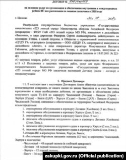 Первая страница договора между 322 летным отрядом МО и компанией "Аэротранс" на обслуживание рейсов в Сирию, Судан, и ЦАР