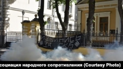 Акция у резиденции главы Русской православной церкви прошла 16 мая. Активисты растянули на ограде баннер с надписью "Извинись за Екб" и зажгли дымовые шашки. Таким образом, активисты поддержали жителей Екатеринбурга, которые выступают против строительства храма на месте сквера у Театра драмы.
