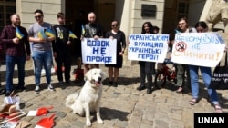 Накануне несколько десятков активистов украинских националистических организаций, в том числе "Национального корпуса" и признанного в России экстремистским и запрещённого "Правого сектора" собрались возле памятника Жукову, чтобы выразить протест против съезда партии "Доверяй делам". Украинские националисты утверждают, что участие этой партии в предстоящих выборах в Верховную раду — попытка реванша представителей бывшей Партии регионов, лишившейся власти после протестов на Майдане в 2014 году.