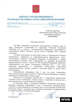 Как пишет руководитель аппарата уполномоченного по правам человека Владимир Лозбинев, версия причастности к пропаже Кобышева сотрудников чеченских правоохранительных органов "в настоящее время не нашла своего подтверждения". Кроме того, и расследование никто, кажется, возобновлять не собирается. По крайней мере аппарат омбудсмена не нашёл оснований для этого в показаниях Максима Лапунова. По заявлению самого Лапунова, уголовное дело также не было возбуждено (сам он уехал за границу), так что соединить уголовные дела Кобышева и Лапунова не получится.