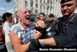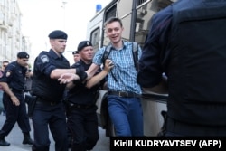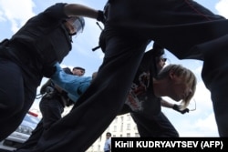 Один из участников акции рассказал корреспонденту Радио Свобода, что в выходящих на Тверскую улицу переулках много людей, их оттесняют от Тверской, многих зажерживают и уводят в автозаки.