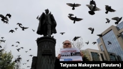В центре Москвы, на Бульварном кольце проходит серия одиночных пикетов в поддержку независимых кандидатов в Мосгордуму и подозреваемых в участии в массовых беспорядках на акции 27 июля.