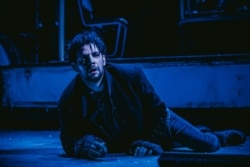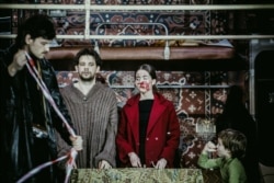 В головах героев книги – лихорадка и путаница, но хитрая сюжетная структура у Сальникова остается геометрически выверенной. Спектакль в чём-то виртуозно материализует роман про то, что мир тесен, а воздух только кажется, что пресен, но в любую минуту может запахнуть и кровью, и приключением. Но вот воздуха спектаклю пока явно не хватает. Он полон крутых придумок, но увязает в частностях; тонет в избыточной сценографии (художник – Савва Савельев), не оставляющей пространства для манёвра; напоминает тот самый троллейбус: где-то искры от соприкосновения дуг с электропроводами, где-то набирает ход, где-то – ни шатко, ни валко; и слишком много остановок, то бишь, глав. Книгу не проблема перелистать назад, уточнить, примерещилась ли связь пятой и 155-й страниц или нет, всё действительно закрючковано. Спектакль не перемотаешь, да и не рассчитывает Фёдоров на перемотку, предпочитая ясности рассказа и посыла каскад диковинных сцен. Сбивает ритм смысловыми повторами – это в тексте согрешить ими не страшно (так я предваряю упреки в собственный адрес), а для театра – губительно; нет-нет да и возникнет неодолимое желание взглянуть на часы. Вот встреча Петрова с мертвым одноклассником, тоже с Сергеем (Артём Шевченко, скрывавший под маской Бродского окровавленное лицо), выглядит вставным номером с сомнительным комическим эффектом – одноклассник, мнивший себя автором покруче Шолохова, вывел Петрова геем, влюблённым в напарника-слесаря. Наверное, Фёдоров хотел, чтобы Шевченко напел "Это всё не ты, Петров" – но понятно уже, что здесь все, всё и вся не совсем то, чем кажется. Дважды "умирает" младший член семьи Петровых: ещё до кризисной гриппозной ночи родители разыгрывают жертвоприношение в духе библейской легенды об Аврааме – под ухарский спич о разделывании барана. Подмены мальчика барашком не происходит, родители достают внутренности, изображает которые ёлочная мишура; вот весь этот новогодний беспредел, вакханалия огонёчков и ёлок – самый ёмкий, и ироничный, и эзотерический образ "Петровых".