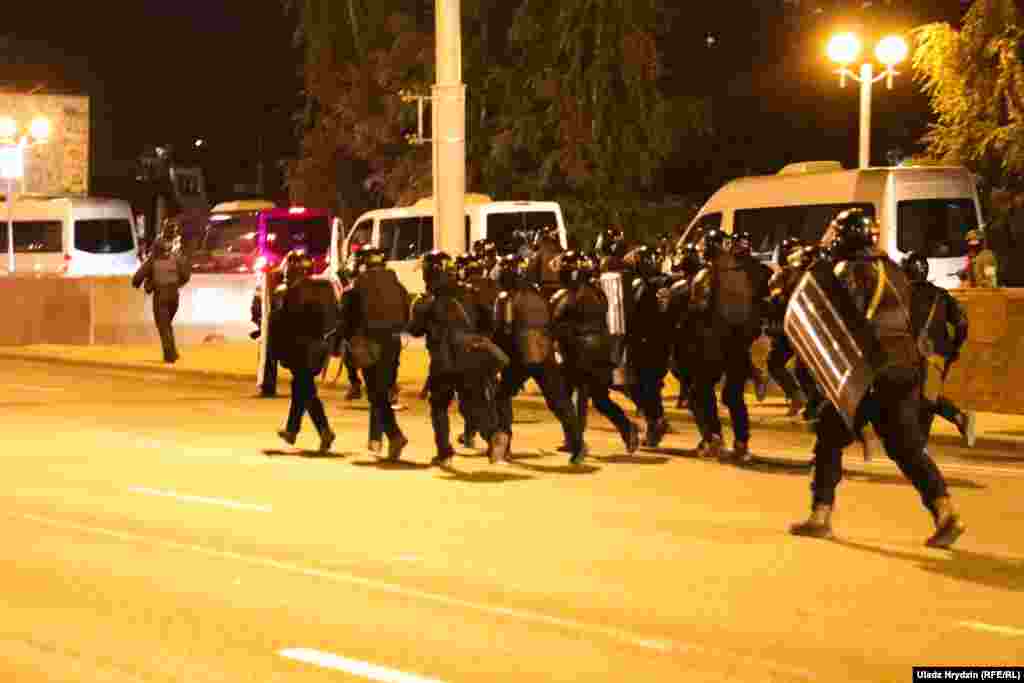 В Минске основными очагами массовых выступлений были площадь у супермаркета "Рига" и район между станциями метро "Спортивная" и "Пушкинская". По всему городу шли задержания протестующих.