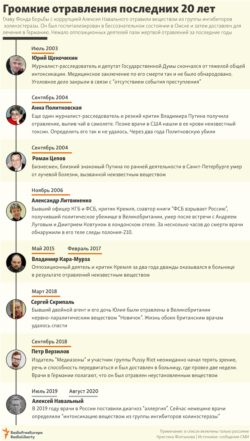 Навальный почувствовал себя плохо утром 20 августа в самолёте Томск – Москва. Двое суток он провёл в реанимации в Омске, где самолёт совершил экстренную посадку. Утром в субботу его перевезли в Берлин. Соратники Навального с самого начала утверждали, что оппозиционер был отравлен; лечившие его в Омске медики заявляли о нарушении обмена веществ, не называя его причин.