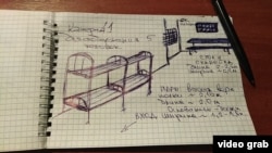 "Ворота если открываются, то первое, что вы видите, – это площадка, две скамеечки, стол. Это место для курения сотрудников. Задержанных туда не выпускают на прогулку", – показывает Алексей рисунки.