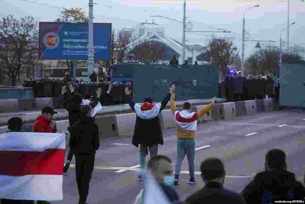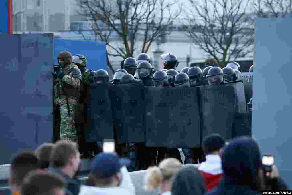 ОМОН ответил на демонстрацию светошумавыми гранатами и резиновыми пулями.