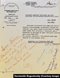 Аркадий Ваксберг писал свою книгу до того, как в Украине были открыты для всех желающих архивы советских спецслужб. Исследователь Константин Богуславский любезно предоставил Радио Свобода документы, которые он недавно нашел в Киеве. В первом, датированном 26 июня 1940 года, 4-й специальный отдел НКВД требует поручить научным институтам сбор 50 кг сушеной бледной поганки (Amanita Phalloides) и обещает оплатить эту работу.