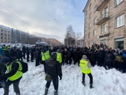 В Петрозаводске протестующие собрались на проспекте Ленина.