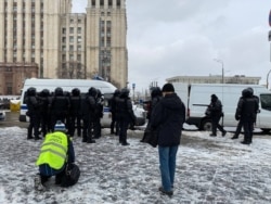 У станции метро "Красные ворота" постепенно собираются люди, передает корреспондент Радио Свобода