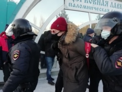По информации корреспондента сайта Север.Реалии, полицейские задержали как минимум двух человек, которые пришли на митинг с плакатами.