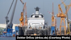 О строительстве яхты, цена которой (без отделки) может достигать полумиллиарда долларов, и о том, что она предназначается для Абрамовича, было известно еще несколько лет назад – однако только недавно на судостроительной верфи Lloyd в немецком Бремерхафене с яхты убрали леса, что позволило фотографам и пилотам дронов запечатлеть ее во всей красе.