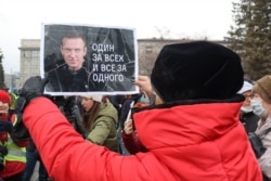 Демонстрантка Алла Волкова говорит, что отстаивает сегодня не только право на медицинскую помощь для Алексея Навального, но и право на достойное будущее для своего сына, который "готов уехать из страны из-за того, что у власти стоят ретрограды с менталитетом "братков" из 90-х".