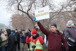 Люди продолжают подходить и скандировать: "Мы здесь власть", "Раз, два, три, Путин, уходи", "Мы здесь власть" и "Долой царя". У участников в руках плакаты с лозунгами в поддержку Навального. Люди говорят, что вышли в целом за свободу – не только Навального, но и всего общества. Полиция наблюдает и пока не вмешивается, сообщает корреспондент Сибирь.Реалии.