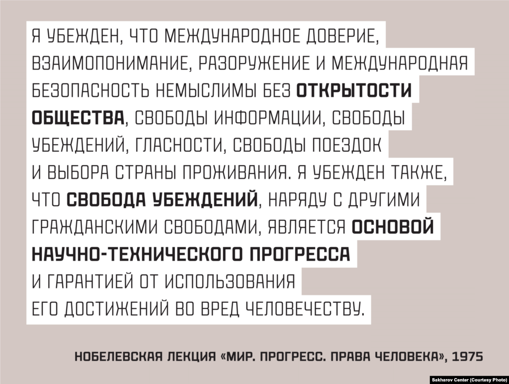 21 мая исполняется 100 лет со дня рождения советского физика-теоретика, общественного деятеля, диссидента и правозащитника Андрея Сахарова. На этой неделе в Москве на Чистопрудном бульваре должна была открыться фотовыставка к юбилею, подготовленная Сахаровским центром. Однако правительство Москвы отказало в ее проведении, устно сообщив организаторам, что "контент не согласован". Радио Свобода публикует все материалы выставки, переданные редакции Сахаровским центром.