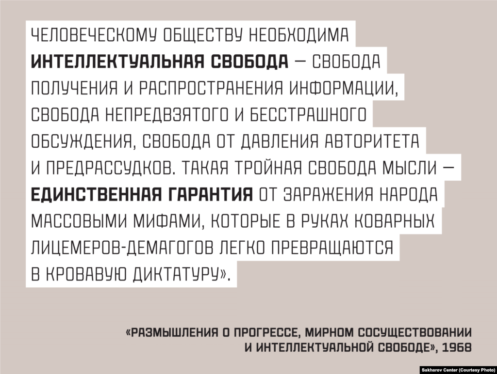 21 мая исполняется 100 лет со дня рождения советского физика-теоретика, общественного деятеля, диссидента и правозащитника Андрея Сахарова. На этой неделе в Москве на Чистопрудном бульваре должна была открыться фотовыставка к юбилею, подготовленная Сахаровским центром. Однако правительство Москвы отказало в ее проведении, устно сообщив организаторам, что "контент не согласован". Радио Свобода публикует все материалы выставки, переданные редакции Сахаровским центром.