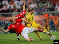На чемпионате мира в Германии Андрей Воронин (справа) был одним из главных героев украинской сборной, но в последнее время впал в немилостьКстати, свидетельством тому, что в команде происходят непростые психологические процессы, являются взаимоотношения Блохина и Воронина: оказывается, один из лучших футболистов Украины, являющийся в отсутствие Шевченко основной движущей силой сборной, давно уже не в ладах со своим главным тренером. А публичные выяснения отношений во время матча с итальянцами, после того, как Блохин обвинил в поражении Воронина, вообще повергли в шок привыкших обманываться любителей футбола! Правда, вскоре конфликтующие стороны, проявив благоразумие, пришли к согласию, однако червячок сомнений уже успел подточить шаткие надежды на благополучный исход турнира.
