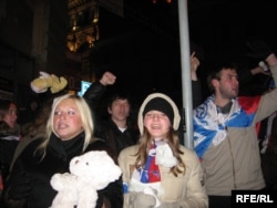 Активисты "России молодой" у здания ЦИК Через некоторое время после начала акции к зданию ЦИК подошла колонна активистов пропутинского движения «Россия молодя», которые держали в руках плакаты и плюшевых медвежат. Они кричали «План Путина - победа России!». Представители «Другой России» пытались их перекричать, но « Их пытаются перекричать представители движения "Другой России", но у них ничего не получилось – «россомолов» было больше. ОМОН спокойно наблюдал за этой ситуацией.