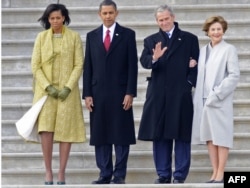 По окончанию инаугурации Обамы Джордж и Лора Буш сели в военный вертолет, ожидавший их у Капитолия, и отправились домой в Техас. Телевизионные камеры провожали их полет над толпой, когда в объективы попала группа людей с плакатом: «Убирайся, Буш!»