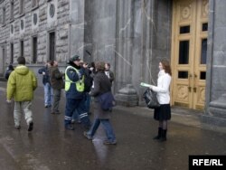 Вместе с пятью "яблочниками", которых привели не в отделение милиции, а в приемную ФСБ, задержаны трое членов съемочной группы РЕН-ТВ, фотокор Радио Свобода Юрий Тимофеев и случайный прохожий.