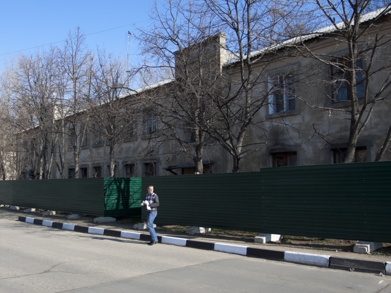 Приехав к одному из ПТУ, глава государства в сопровождении губернатора подошел к одному из домов на Ухтомской улице, обнесенному только что выкрашенным зеленым забором.