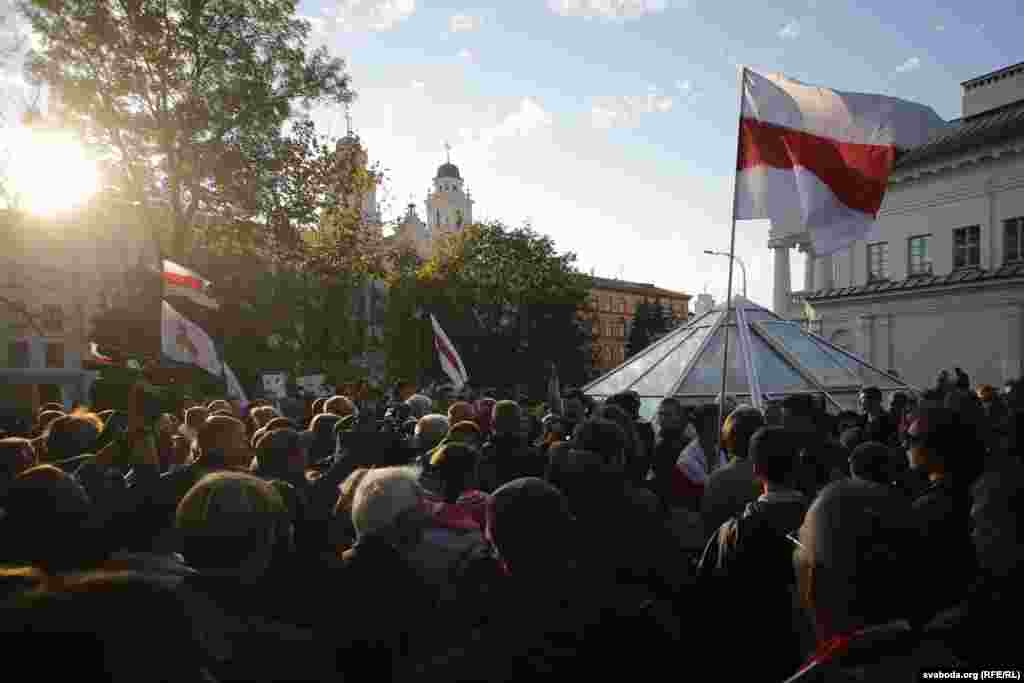В Минске 4 октября состоялась массовая акция против размещения на территории Белоруссии военной базы российских вооруженных сил. Несколько сот человек с плакатами, бело-красно-белыми флагами оппозиции и знаменами Евросоюза вышли на улицы Минска, скандируя "Нам нужно мирное небо!".