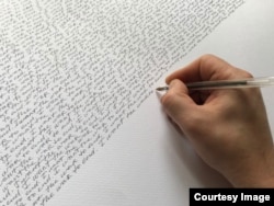 Я пишу фразу "Я хочу, чтобы кончилась война" на больших листах