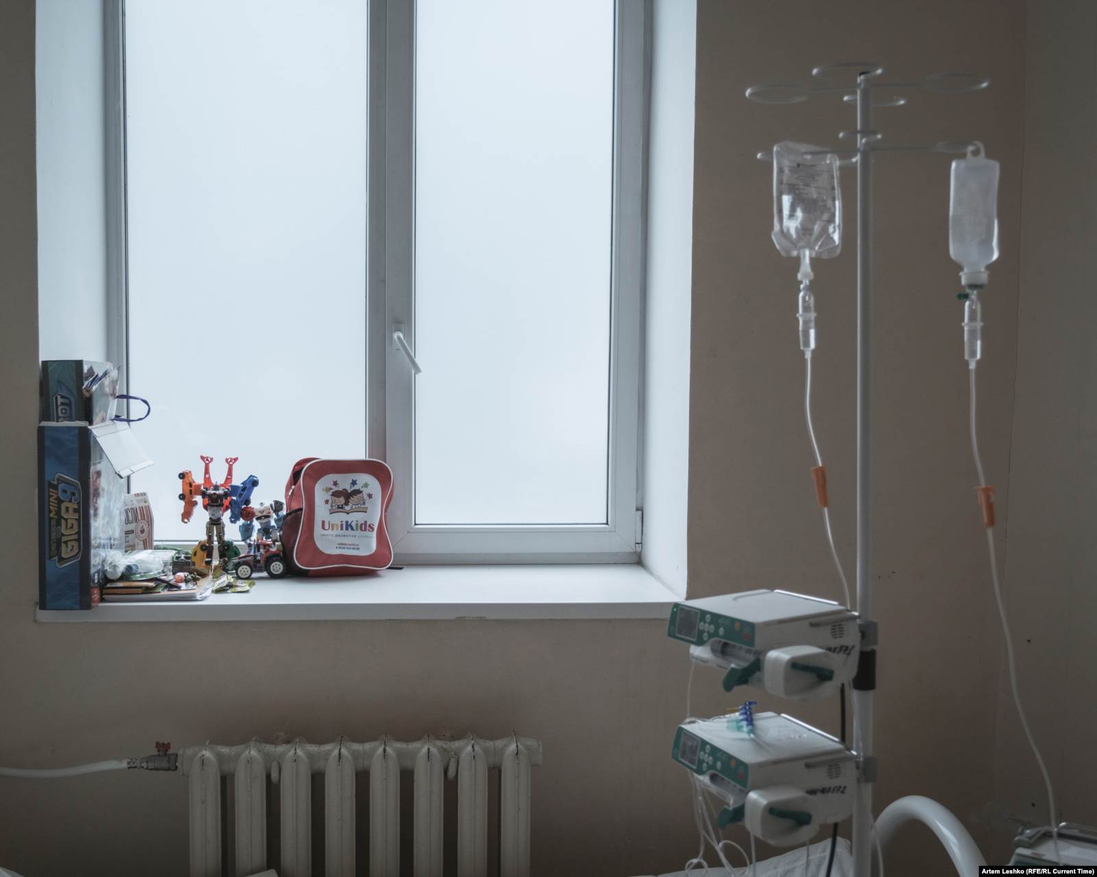 Мальчик смотрит на ноутбуке мультики. Любимый – "Расти-механик". Рядом с кроватью – капельница, на подоконнике аккуратно сложенные игрушки.
