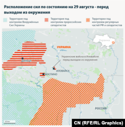 Существует информация, что российская сторона предложила украинцам выйти через "зелёный коридор" 27 августа. Официальное обращение Путина, однако, с требованием обеспечить "зелёный коридор" украинским войскам появилось только в час ночи 29 августа.