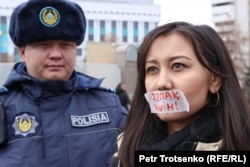 Казахстанцы митингуют в Алматы 13 февраля в память о погибших во время беспрецедентных антиправительственных демонстраций в начале января. Автор фото – Петр Троценко, RFE/RL.