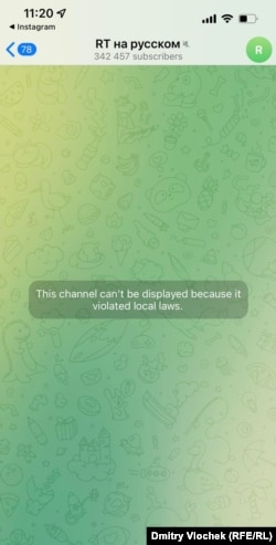 Телеграм-канал RT заблокирован в Европейском Союзе.