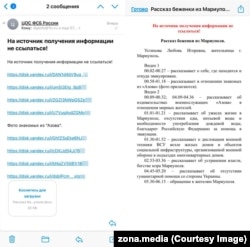 Распространенное российскими СМИ видео, на котором беженка из Мариуполя рассказывает о "зверствах полка Азов", было разослано пресс-службой ФСБ с требованием не ссылаться на источник.