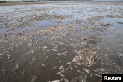 Выше по течению, на обмелевшем водохранилище, – массовая гибель рыбы.