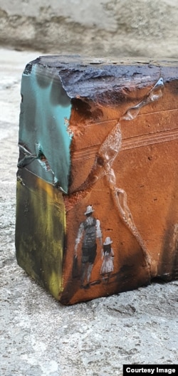 – Должна рассказать небольшую предысторию. Моя мама, когда уезжала из Одессы, взяла с собой собаку, сумку на колесах, которую мы называем "кравчучка", куда положила корм для собаки, лекарства для себя, документы, скотч, ножницы и кирпич. Кирпич из нашего дома. Я с 2013 года создаю артобъекты из кирпичей. Первый объект под названием "Семья" находится в постоянной экспозиции Музея современного искусства Одессы. И это было "7 Я", то есть "я-мама-папа-бабушка-дедушка-бабушка-дедушка". Это были кирпичи из дома, часть которого разобрали после смерти моей прабабушки. Дальше я продолжала работать, но уже с одиночными проектами. И тут попросила маму привезти кирпич из нашего дома. Она его привезла. И первой выставкой стала выставка в Венеции 24 апреля 2012 года. Там кирпич впервые был экспонирован. Выставка называлась "Трансформация наследия Сони Делоне", художницы-авангардистки, родившейся в Одессе и переехавшей в Париж. И вот такая аналогия – я тоже родилась в этом городе и стала эмигранткой – послужила толчком для выставки. Мы работали с Женей Деменком, но выставка открылась до начала вторжения российских войск в Украину. А потом на моих работах появился знак "сохранить наследие", особый знак, звездочка, позволяющий сохранить особо хрупкие предметы. Украинцы с началом бомбардировок начали заклеивать окна скотчем, чтобы осколки не поранили людей, и тем же самым знаком покрывали живопись или графику, которые были под стеклом, и потом складывали все это в хранилища. Этот знак перешел и на мои работы, только был уже нарисован на бумаге. Он стал символом, призывающим сберечь людей, генерацию, культуру, жизнь. Позже мне предложили сделать выставку в рамках фестиваля в Париже. И эти работы переехали в Париж вместе с кирпичом. Но я не смогла поехать туда на открытие, потому что уже случилась трагедия с моей мамой, и я должна была находиться рядом с ней.